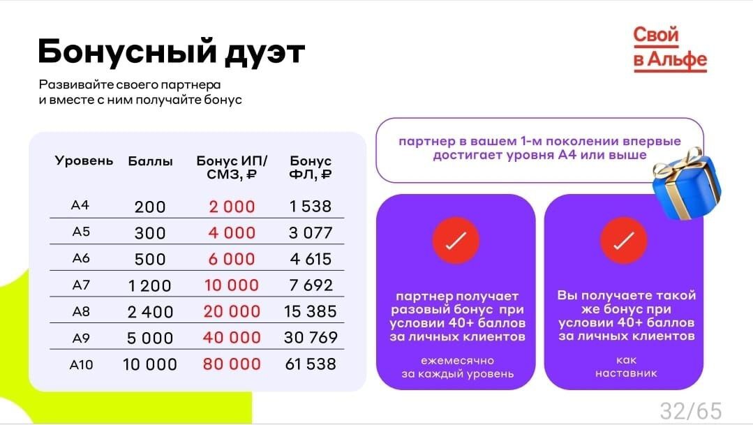 В проекте "Свой в Альфе" предусмотрено множество бонусов, которые помогут вам зарабатывать больше.